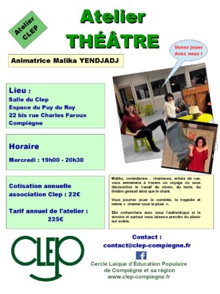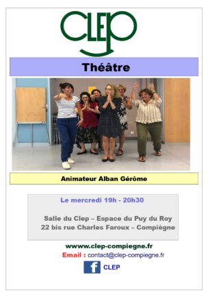 Voilà, l’été approche et la saison théâtrale du Clep se termine. Le mercredi 13 juin , l’atelier théâtre nous a offert un très joyeux et joli moment : émotion, rire et surtout beaucoup d’imagination. C’est avec un très grand plaisir que nous les retrouverons l’an prochain aussi si vous souhaitez vous évadez, créer et faire […]