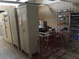 Après un gros travail par les membres de l’association pour déménager les armoires et les étagères de rangement, les murs ont étés repeints par un artisan.