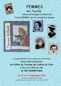 Atelier dessin : des élèves exposent leurs œuvres Du 15 au 20 septembre, Betty Perrin et Gisma Tumerelle exposent leurs œuvres à l’Office de Tourisme de Pierrefonds A noter : Betty Perrin participe également à une exposition collective Femmes Art Textile Post Author: Michel Fumagalli