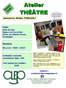 Publié le18 AOûT C’est la rentrée à l’atelier théâtre Adhésion 25€ Cours 258€ Première séance le mercredi 3 septembre 2025 Les inscriptions se font sur...